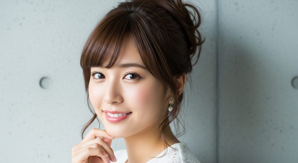 結婚式やフォーマルなパーティーには、上品で清楚なアップヘアが定番。きちんと感があり、ドレスやフォーマルな服装に最適です。