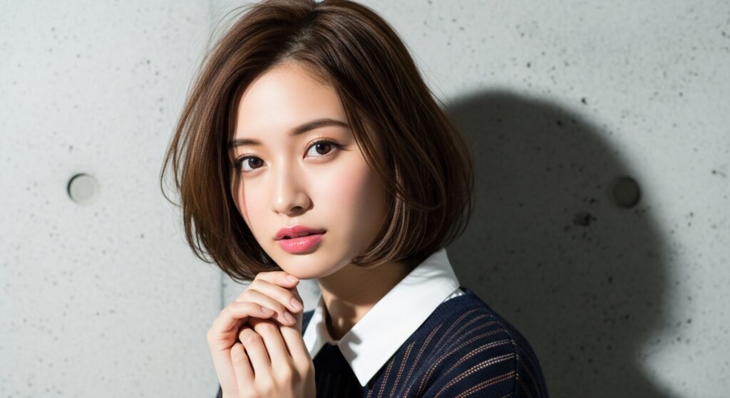 ボブ〜ミディアム丈での前髪なしスタイルは、巻き方や質感で印象が大きく変わります。艶感を出せばエレガントに、マットな質感ならカジュアルダウンした雰囲気に仕上がるので、その日の気分やシーンに合わせて変化を楽しめます。