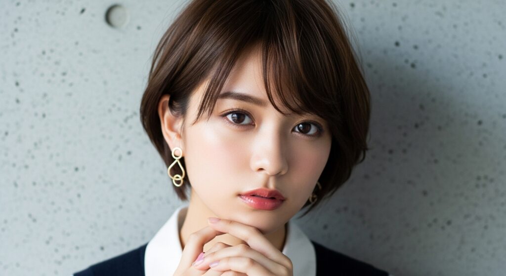 いきなり短くするのが不安な方には、前髪とサイドを少し長めに残したボブ風ショートがおすすめ。耳かけスタイルを楽しめるのも魅力です。